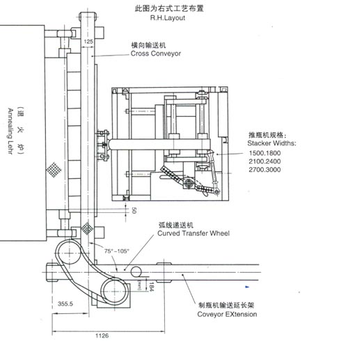 该机组是我厂在1988年消化吸收西德派尼康姆公司的技术制造的,具有国际九十年代先进水平,可与QD4A、QD6A、QD6C、QD8A、QD8D等单滴料制瓶机和六组 、八组、十组、十二组、双滴料制瓶机配套使用;与供料机、制瓶机保持严格的同步运行,将玻璃制品连续,等距离地自动排列,避免碰撞,倒伏,磨擦现象,有效地提高玻璃制品的合格率,并保证其退火质量,为冷端喷涂提供了良好的条件,该机组适用于任何形式任何规格的退火炉,尤其适用于电加热的退火炉。